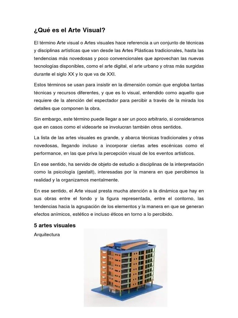 Si sales a la calle podrás apreciar los grandes edificios, los objetos industriales, las imágenes publicitarias, el exterior e interior de las casas, e inclusive, la ropa que acostumbras a ponerte todos los días y el diseño de tu celular están hechos de algún tipo de arte. Añade tu respuesta y gana puntos. El aspecto que tienen en común todas las expresiones de las artes visuales es que se pueden ver. 04.12.2019 · las artes visuales se encuentran presentes en todo lo que nos rodea. Se entiende entonces por técnica la suma de procedimientos y procesos con que construye la obra de. Hay muchas formas de estudiar la historia, pero seguramente para.. 11.10.2018 · 10 tecnicas de las artes visuales 1 ver respuesta publicidad publicidad cbasmx09 está esperando tu ayuda.